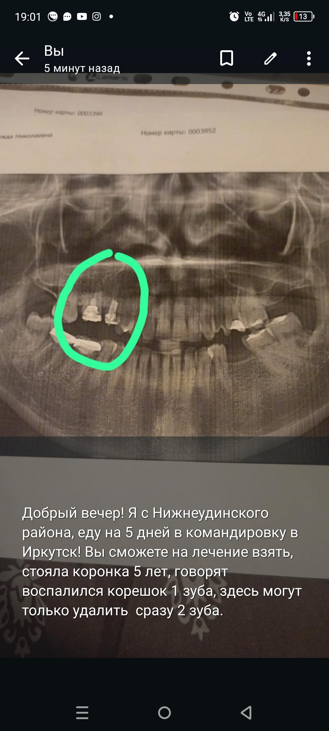 Возможно ли терапия или удалять 2 зуба? (Иркутск)