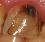 Мертвый зуб 22, эндо 10-15 лет назад. Был пришеечный кариес, пломбу натянули почти на всю вестибюлярную поверхность, но она отлетела. Слева - медиальная сторона. Вопрос - медиальный более светлый кусок - это пломба, или кусок эмали?