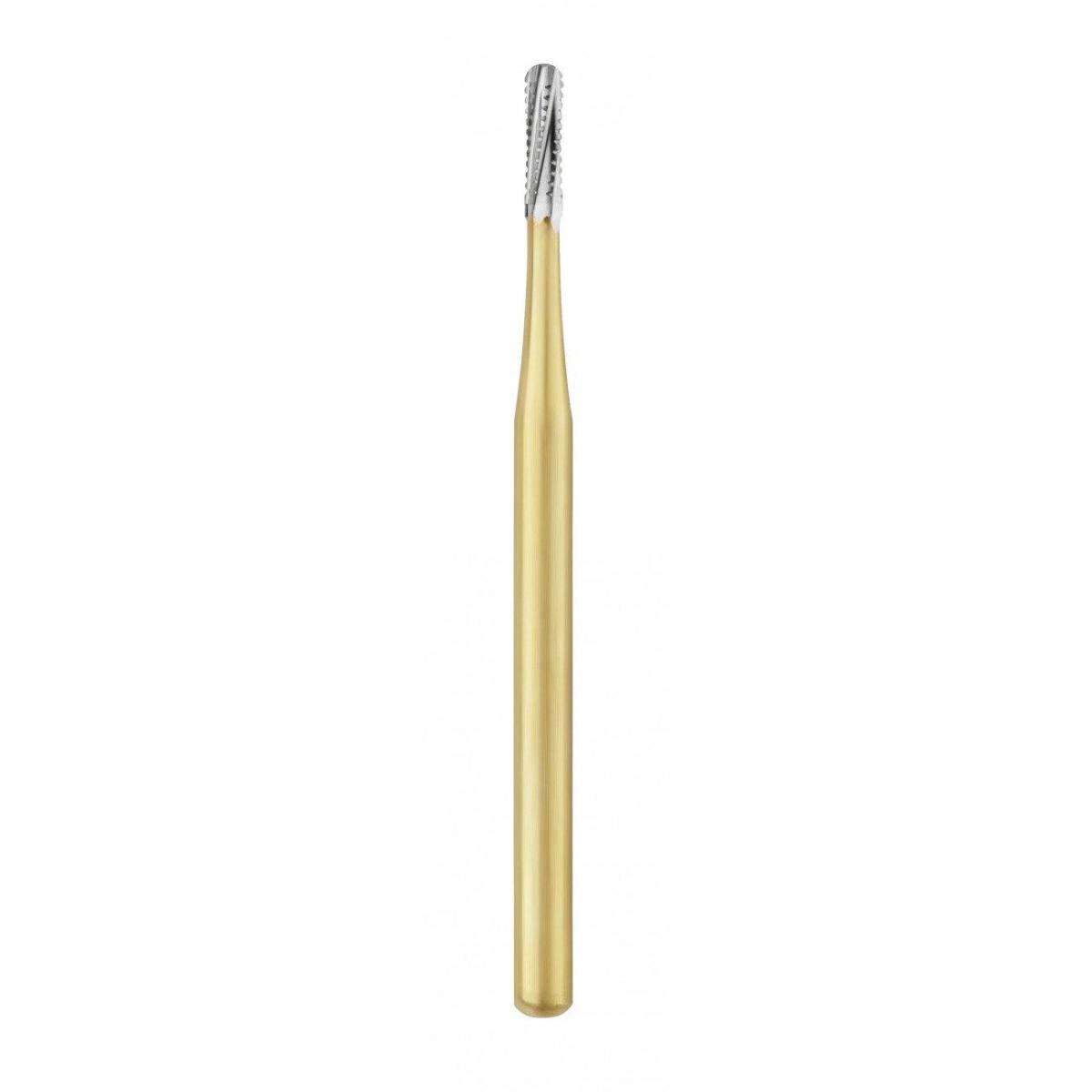 Твердосплавные боры «SS WHITE» из карбида вольфрама с напылением нитрита титана для турбинного наконечника хирургической длины FG GW 1557 SL GOLD фиссура с закруглённым концом/ Тип наконечника: GW турбинный, стандартный «Золотая серия» , GW SL турбинный, хирургической длины «Золотая серия»