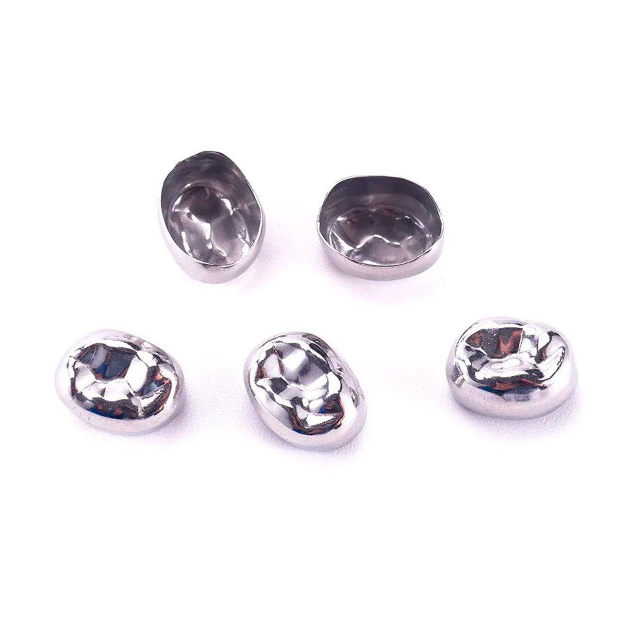 Детские коронки - это временные коронки из высококачественной нержавеющей стали, предназначенные для установки на первые моляры нижней челюсти с правой стороны. Установка коронок на временные зубы помогает обеспечить максимально качественный процесс жевания и сохранить правильный прикус у ребёнка до прорезывания постоянных зубов. Данная процедура актуальна в случаях, когда большая часть зуба разрушена и нет возможности его восстановить, после удаления зубного нерва, при гипоплазии зубной эмали или различных травмах.