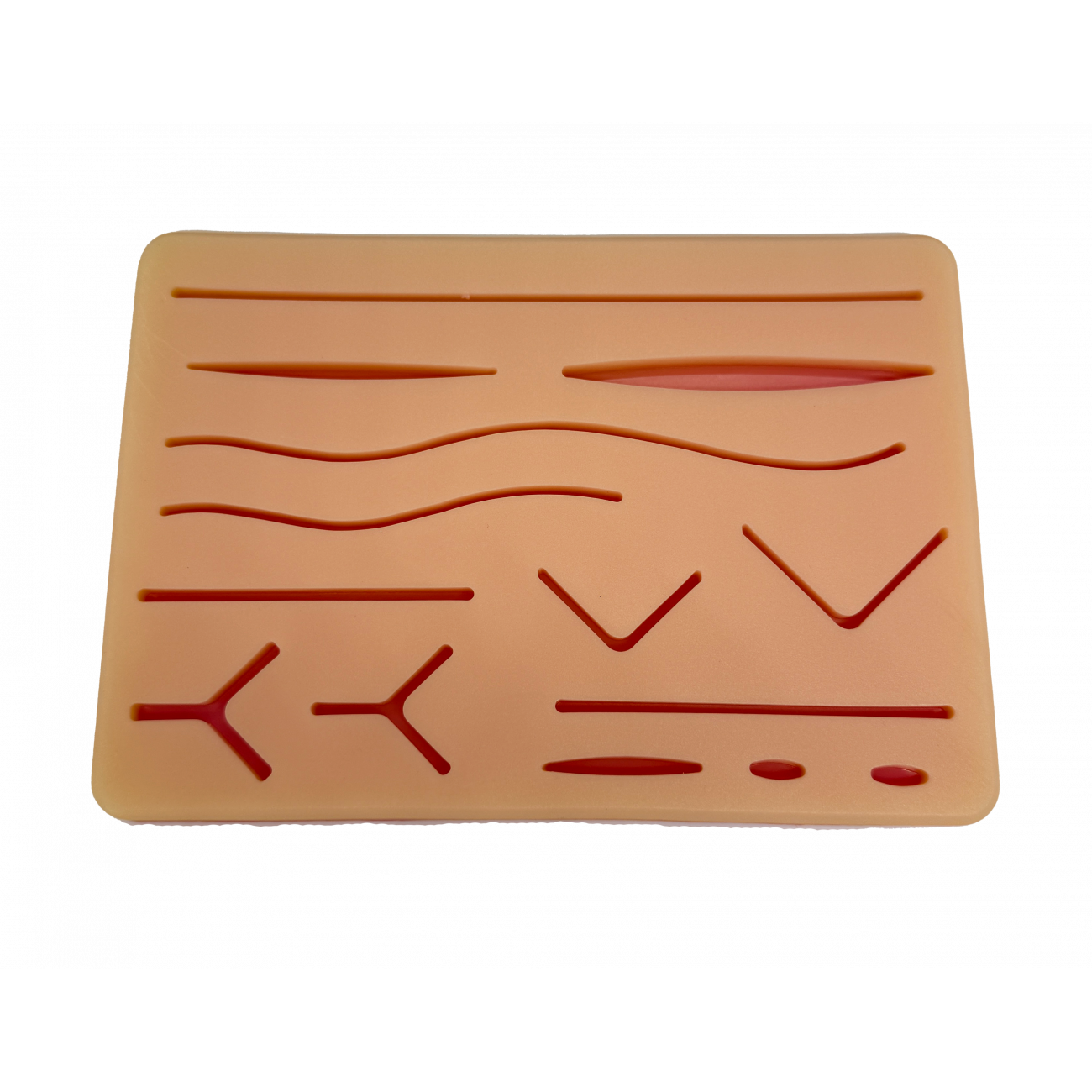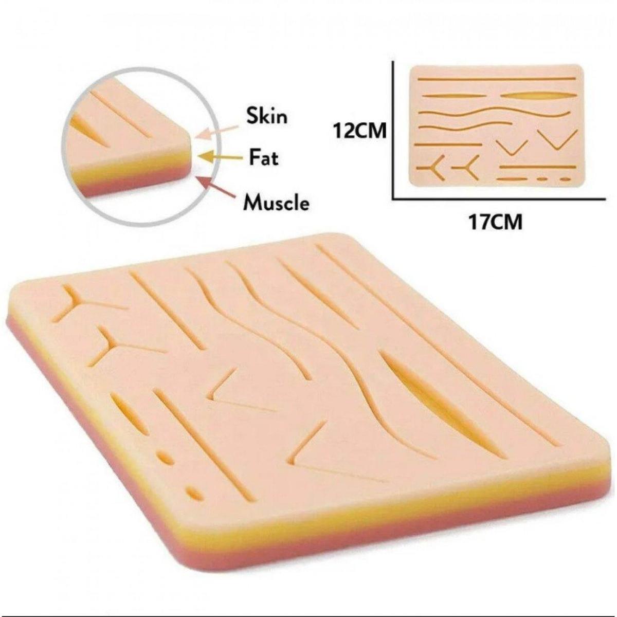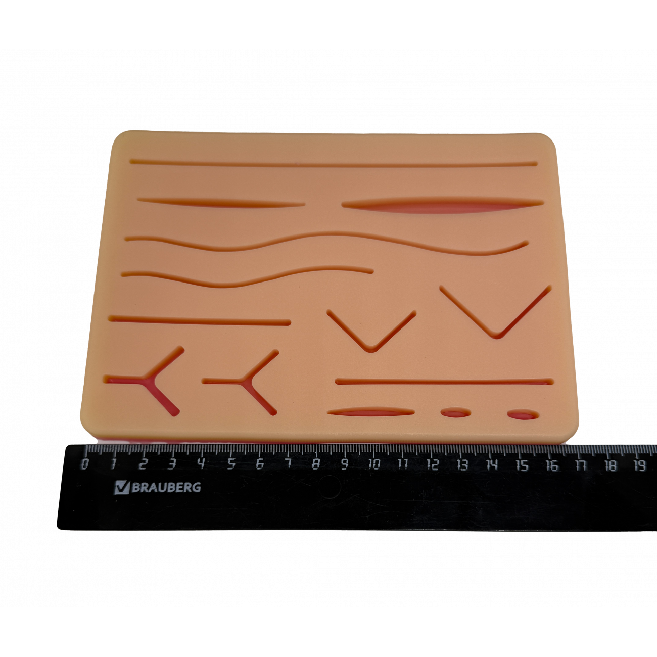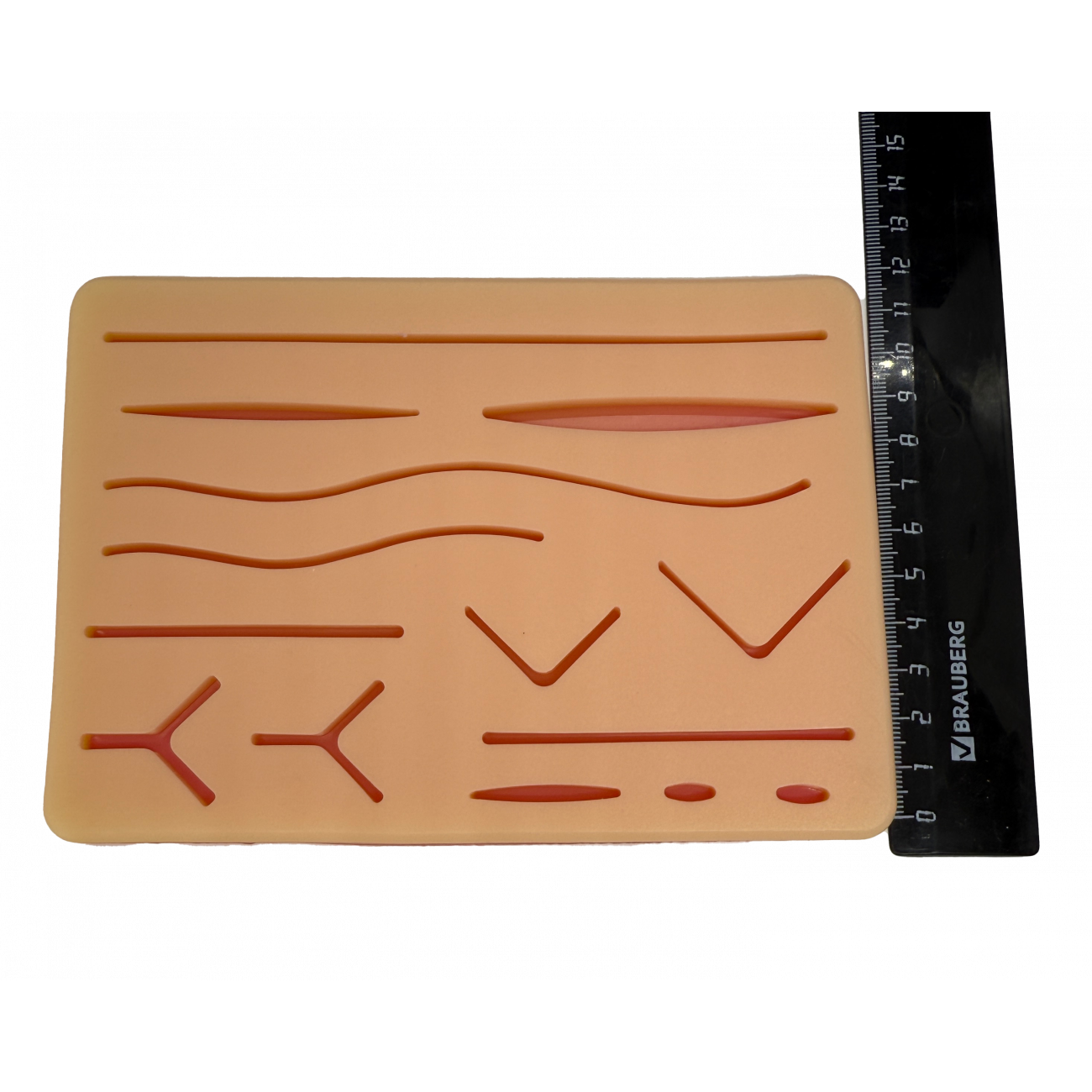 Учебный Коврик хирургический для наложения и снятия швов. Тренажер позволяет контролировать правильность наложения швов, в случае перетаскивания узлов, ткань может прорезываться. Изготовлен коврик из силикона высокого качества и по упругости похож на кожу человека, имеет 3 слоя тренировочной площадки: кожа, жировой слой и мышцы, что дает возможность отработки навыков наложения швов на рану различной классификации и размера. Материал прочный, долговечный, легко моется.
