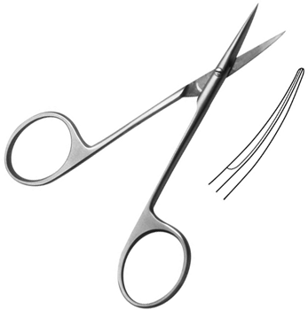 Ножницы хирургические вертикально-изогнутые и прямые (1шт). Медицинские хирургические ножницы, используемые для рассечения мягких тканей при хирургических вмешательствах. Могут использоваться для разрезания шовного и перевязочного материалов. Оба рабочих кончика острые, кольцевые рукоятки, рабочая часть изогнутая и прямая. Изготовлены из нержавеющей стали.