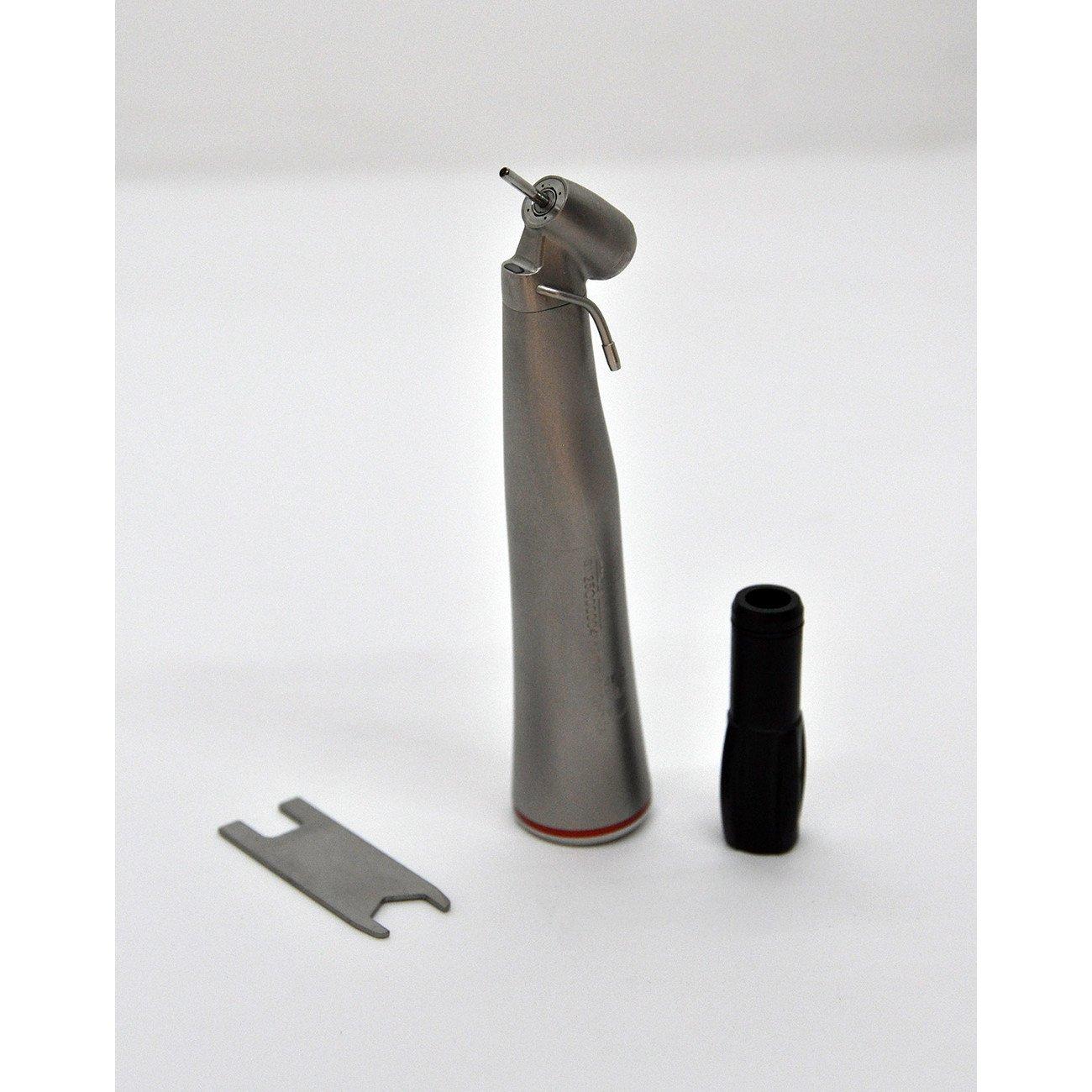 Наконечник угловой HELICA с 45-градусной головкой, 1:4.2 повышающий, кнопочный, с фиброоптикой и без, 4-точечный спрей, 6-канальный.