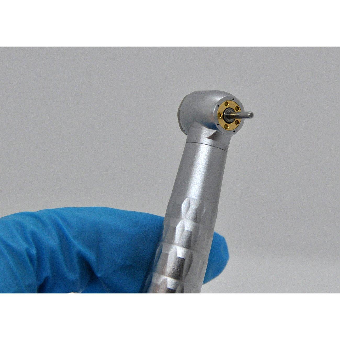 Угловой турбинный стоматологический наконечник оснащен продвинутой головкой динамометрического типа с бестеневой светодиодной подсветкой и пятиточечной системой подачи воды.