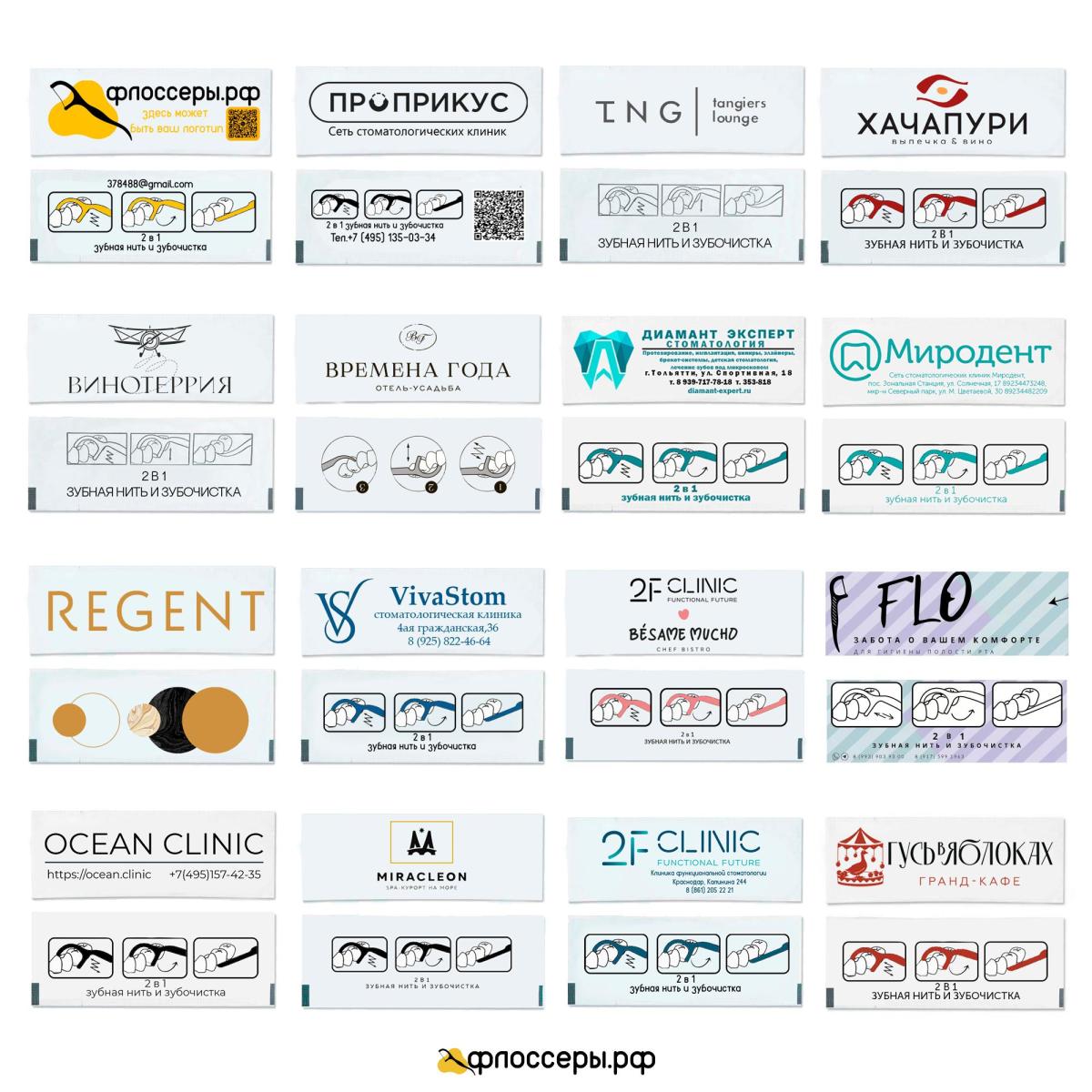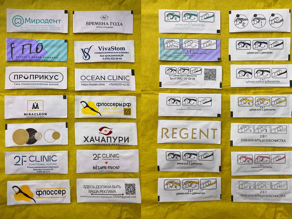 - Флоссеры с вашим макетом, логотипом, контактами или QR-кодом