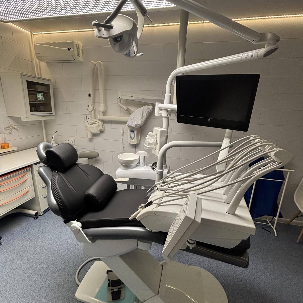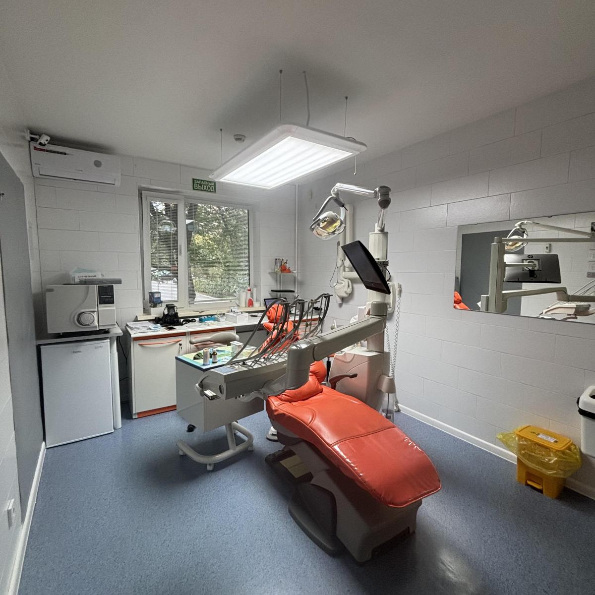 Стоматология оснащена современным дорогим европейским оборудованием, 2 стоматологические установки и кураторская, возможно поставить третью, поставить аппарат КЛКТ или оставить под кураторскую помещение, прицельный рентгеновский аппарат – 2 шт. (USA), Kavo установка, компрессор Ekom, дизайнерская мебель и камин на ресепшене.