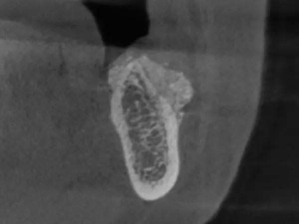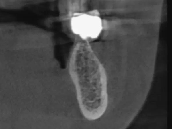 Фото 9: КЛКТ-снимок левого первого моляра нижней челюсти с достаточной высотой и шириной кости для установки имплантата.
