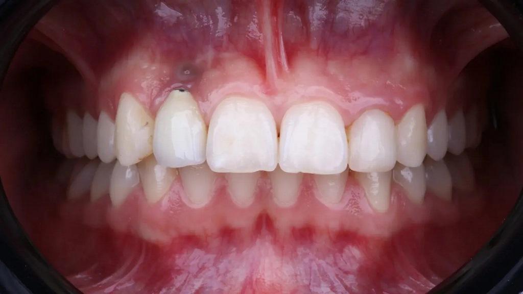 Фото 7: Заживление тканей после установки имплантата и пересадки соединительной ткани.