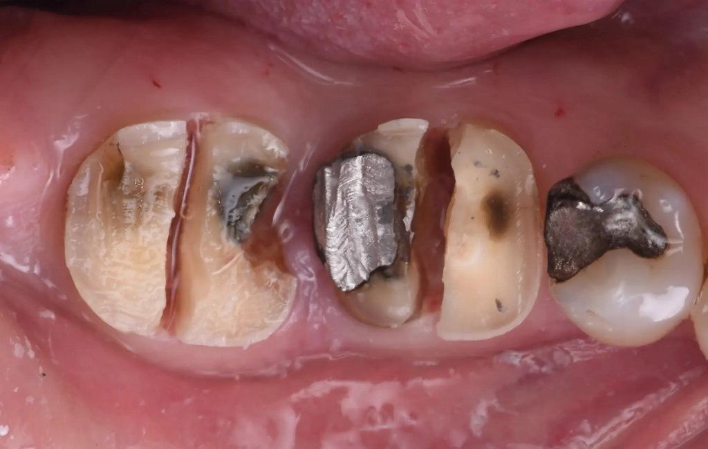 57-летний мужчина обратился в клинику с жалобами на разрушение двух коренных зубов, 46 и 47. У пациента не было патологий в анамнезе, оба коренных зуба имели обширный кариес и поврежденные пломбы (фото 1–6).