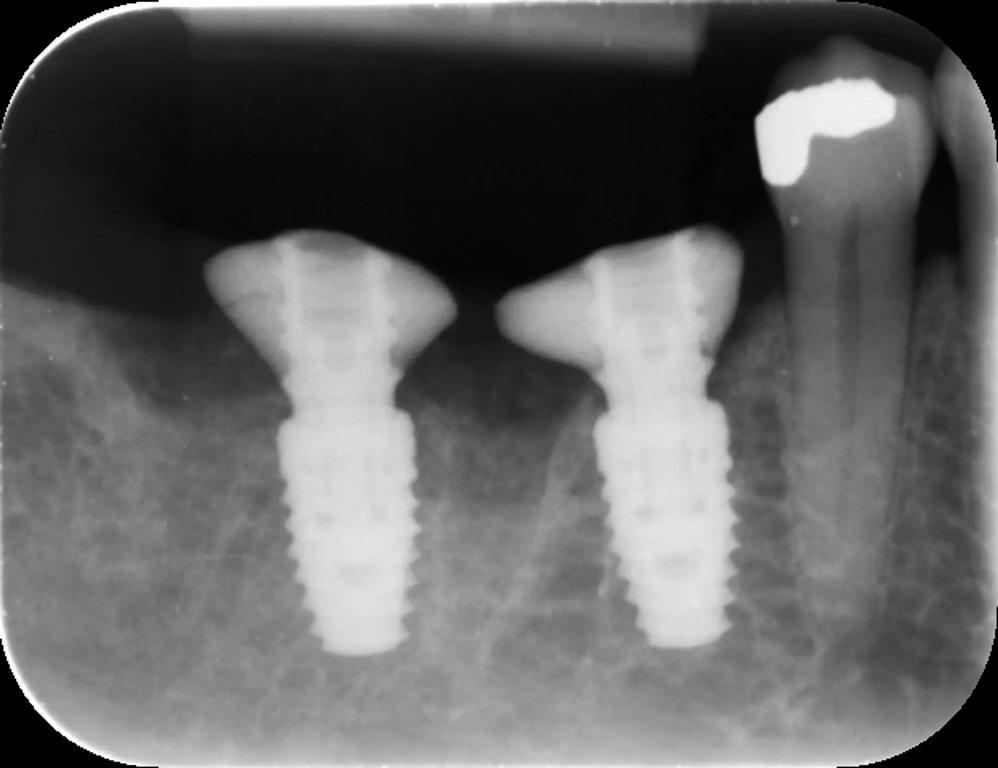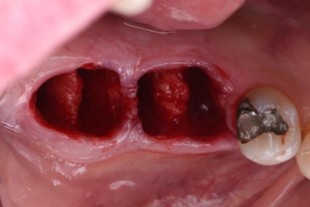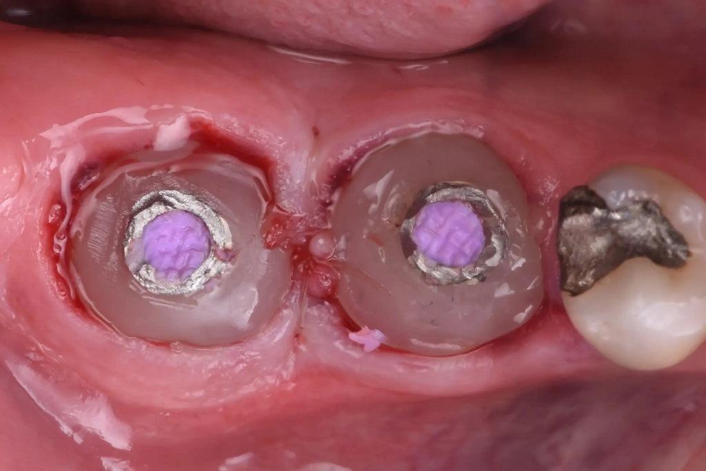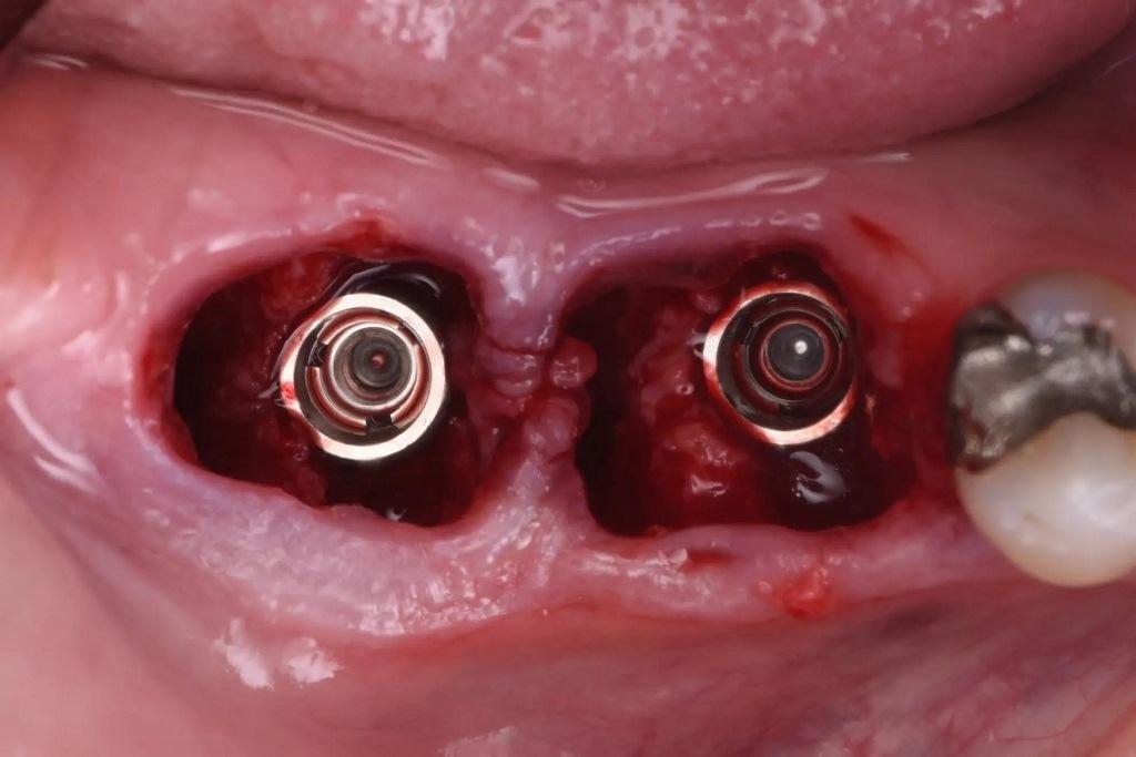 Учитывая отсутствие острой инфекции и наличие достаточной костной ткани, было принято решение о немедленной имплантации с отсроченной нагрузкой на оба места. Немедленная имплантация предпочтительнее, поскольку сохранение существующей структуры твердых и мягких тканей гораздо более предсказуемо, чем попытки изменить ее позже.