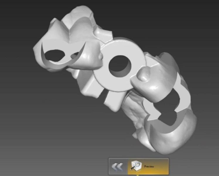 Фото 3. Виртуальная модель верхнечелюстного фронтального отдела с переломанным правым центральным резцом (зуб 1.1).