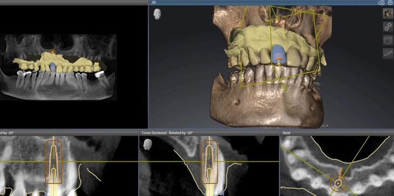 Немедленная установка имплантата сопряжена с трудностями при выполнении остеотомии без навигации. Форма лунки может приводить к смещению бора на вестибулярную сторону, что грозит оголением имплантата при установке. Для предотвращения этого можно применять направляемую хирургию. Кроме того, виртуальное планирование позволяет разработать хирургический шаблон на основе анатомии пациента и выполнить протез-ориентированную установку имплантата, минимизируя проблемы на этапе протезирования. Такой подход также дает возможность провести вмешательство без разреза, что повышает комфорт пациента во время и после операции и сокращает время работы врача. Ниже приводится клинический случай, в котором использовано виртуальное планирование для немедленной установки имплантата; восстановительный этап был отложен из-за необходимости костной пластики при установке имплантата и недостаточного крутящего момента, что не позволило выполнить немедленную временную реставрацию.