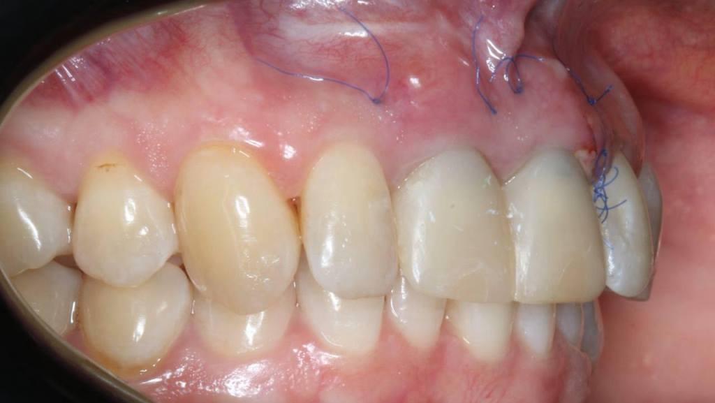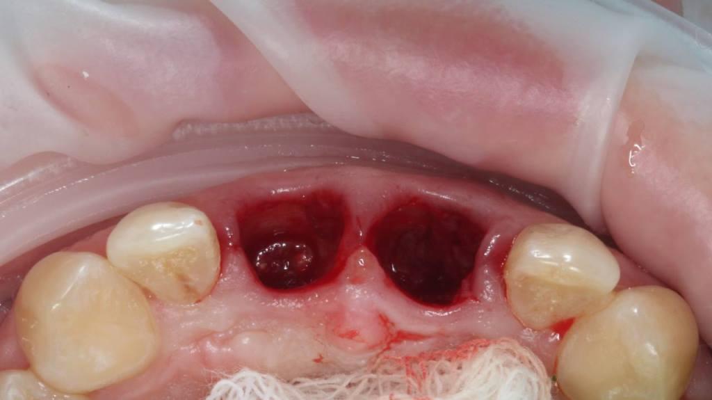 И существует такая методика как IDR - immediately dentoalveolar reconstruction. Суть методики заключается в том, что при дефиците костной ткани мы заполняем пространство костной и мягкой тканями, взятыми с бугра верхней челюсти пациента (за последним зубом). Берется трехслойный трансплантат, и здесь важно до операции по компьютерной томограмме оценить объем донорской зоны. При этом не делается никаких разрезов во фронте. Зубы удаляются очень атравматично, аккуратно, чтобы сохранить все имеющиеся ткани.