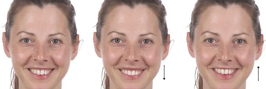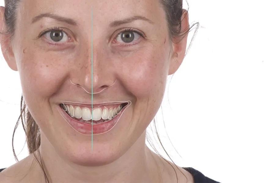 Ключевые параметры включают экспозицию зубов в покое и при улыбке, консонанс дуги улыбки, степень десневой улыбки и симметрию щечных коридоров. У пациентов с выраженной экспозицией зубов и десны интрузия передних зубов может дополнительно усиливать эстетическую дисгармонию. Поэтому план лечения часто ориентирован на интрузию боковых зубов в сочетании с авторотацией нижней челюсти пр. ч. с. при сохранении вертикального положения передних зубов — то есть поддержании их положения относительно губ и лицевых ориентиров — для сохранения эстетики улыбки и гармонии лица.