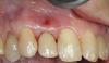Фото 9. По сравнению с исходной ситуацией удалось сформировать надлежащую высоту альвеолярного гребня и адекватный профиль мягких тканей. Пациенту было предписано применение композитного сплинта на протяжении 3 месяцев. В области 8 зуба отмечалась кератинизации бороздкового эпителия.