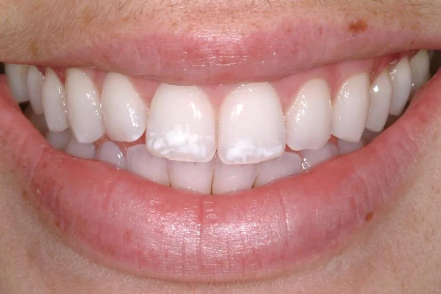Фото 1. 24-летняя женщина обратилась после ортодонтического лечения с желанием улучшить эстетику, так как на ее зубах были белые пятна эмали и наблюдалась незначительная мезиальная ротация клыков.