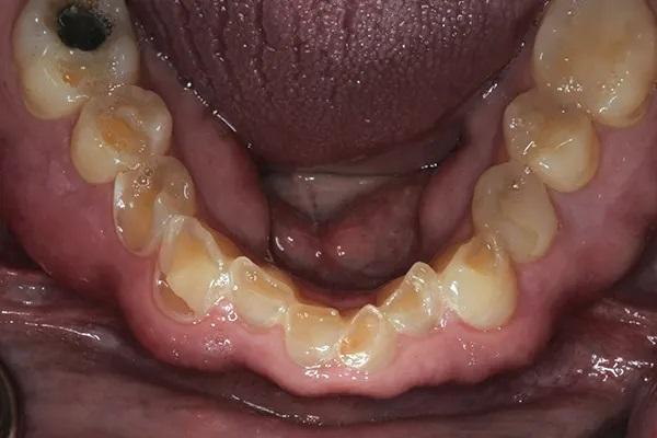 Фото 5: Нижняя челюсть: вид с окллюзионной стороны до лечения Обратите внимание на сильную потерю эмали.