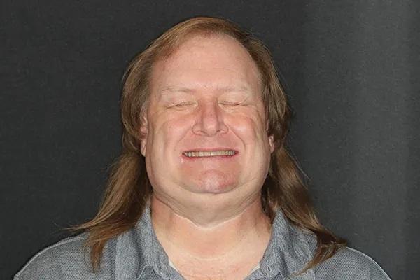 Фото 6: Улыбка Дюшена до лечения. Обратите внимание на обнажение десен.