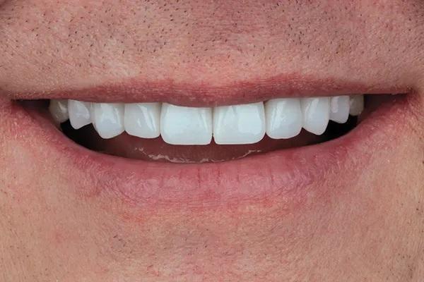 Фото 11: Вид крупным планом на улыбку пациента после лечения.