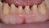 Фото 20: Интраоральный вестибулярный снимок верхней челюсти на контрольном приеме через 2 недели после установки, свидетельствующий о естественном внешнем виде и интеграции.