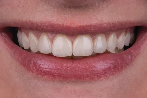Фото 16: Экстраоральный вид после цементной фиксации под изоляцией коффердамом.