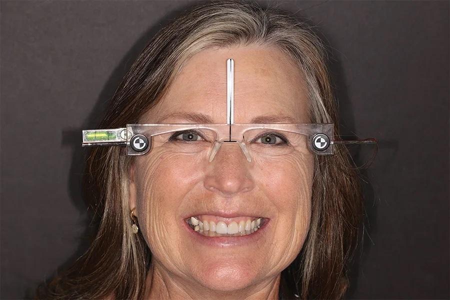 Фото 7. Улыбка анфас с лицевыми ориентировочными очками для стандартизации положения головы.
