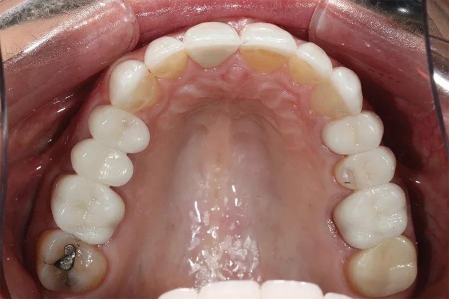 Фото 15. Окклюзионный вид верхней челюсти после лечения, демонстрирующий новую окклюзионную схему.