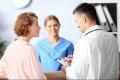Ассистент участвует в беседе врача о состоянии общего здоровья пациента
