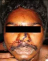 Фото 1: Фото до операции. Рассечение мягких тканей, первично ушитое в медицинском пункте.