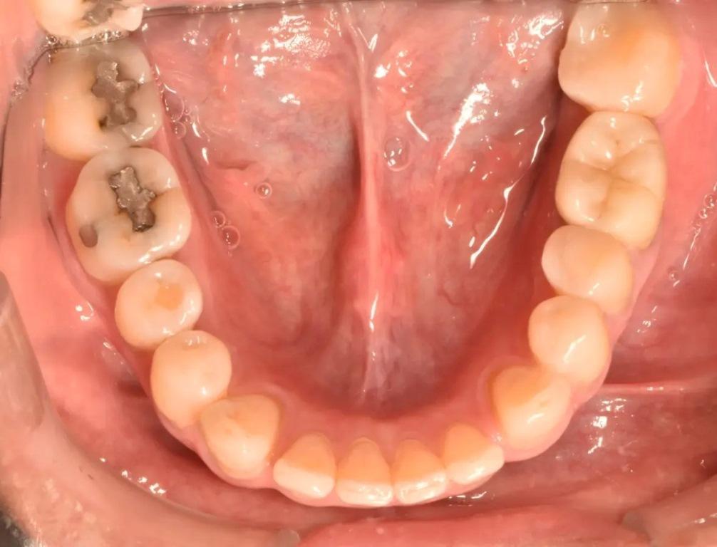 В данном случае была выполнена консервация альвеол с целью сохранения достаточного объема и ширины кости для возможной установки имплантата или протезирования в будущем. Важный аспект, который следует учитывать при лечении наполовину удаленного зуба, является его окончательное восстановление. В данном случае реставрация была направлена на сохранение, минимальную инвазивность для соседних зубов и подготовку структуры оставшегося зуба для надлежащей адаптации и правильного дизайна. Также она была направлена на то, чтобы сбалансированно направлять окклюзионные силы. Несмотря на это, спустя 3,5 года, реставрация не удалась, и был установлен несъемный протез по технологии CAD/CAM.