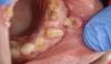 Фото 2: Вид крупным планом на зубной ряд пациента в 2017 году, на котором видно усиление эрозии в переднем и боковых отделах за последние 8 лет.