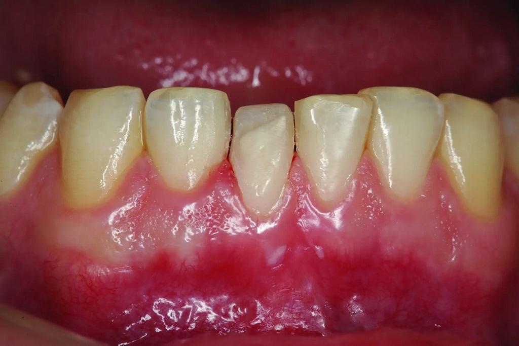 Фото 17: Через шесть месяцев после операции восстановленные зубы 11 и 41 были восстановлены. Была достигнута эстетическая и функциональная гармония.