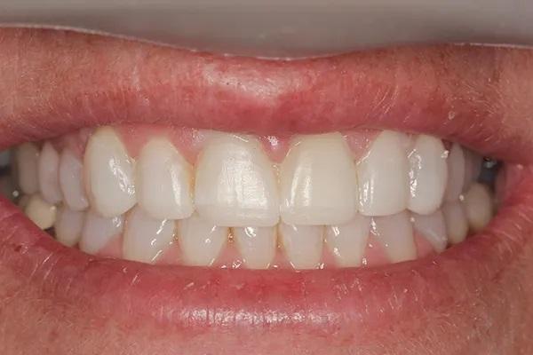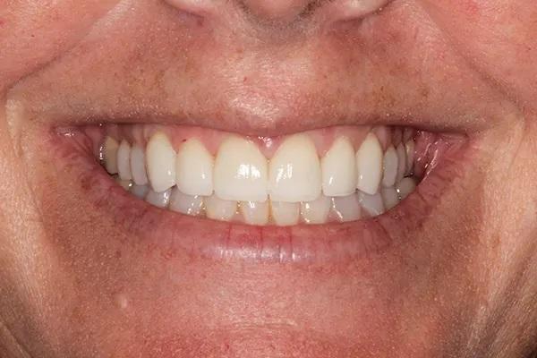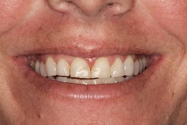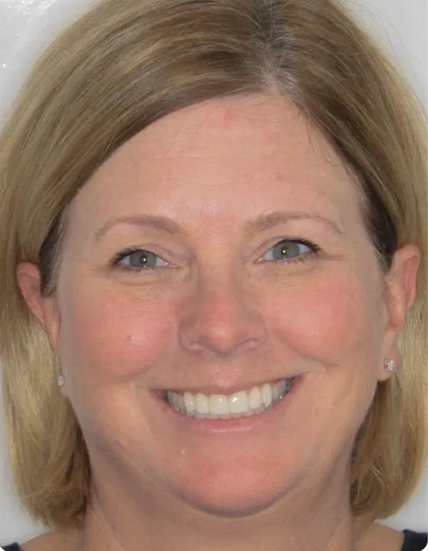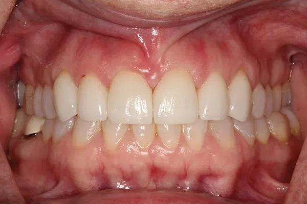 Пациентка была настроена на лечение поэтому с энтузиазмом переходила от стадии к стадии, чтобы решить свои многочисленные стоматологические проблемы, и после пародонтологического, ортодонтического и ортопедического лечения была в восторге от результатов. Общее время лечения составило 14 месяцев. С постоянным наблюдением у пародонтолога риск развития пародонтоза у пациентки остается умеренным, а состояние ее улучшилось.