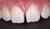 Далее используем шаблон для восстановления небной поверхности и режущего края сразу на всех зубах. Достраиваем дентин. Перекрываем всё эмалью.