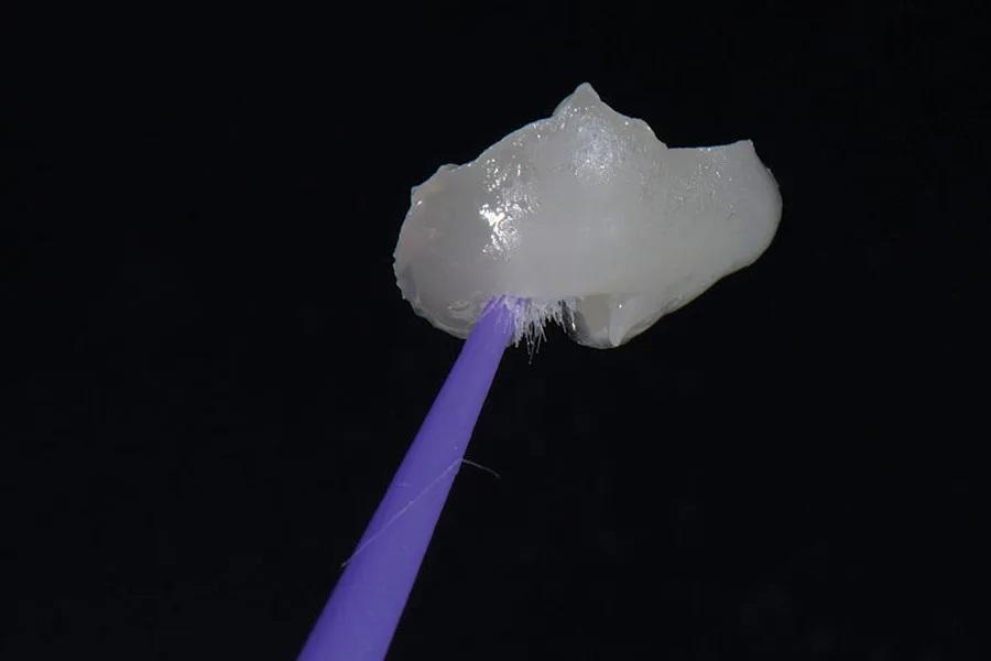 Фото 4. Светоотвержденный окклюзионный «штамп» с прикрепленной к нему микроручкой сняли с поверхности зуба 2.6.
